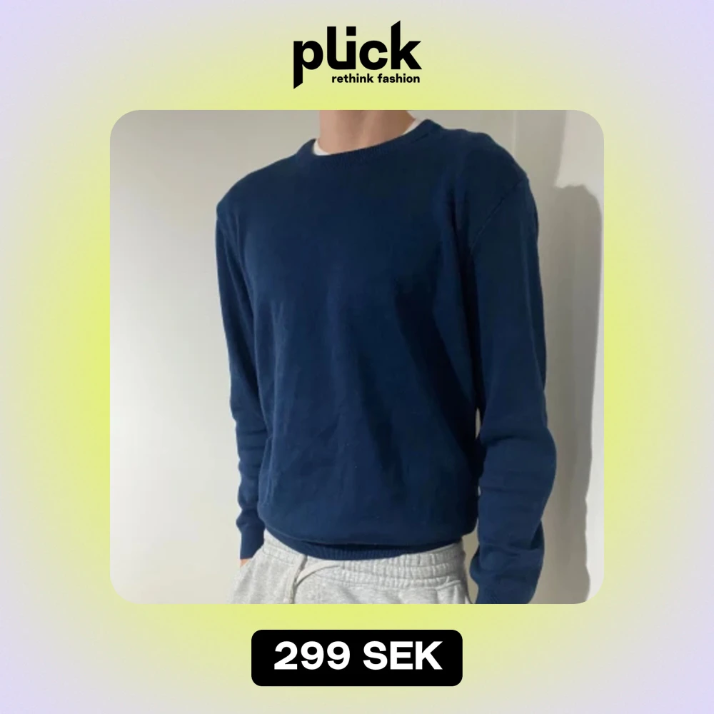 Säljer en stilren mörkblå tröja i bomull. Den har en klassisk rund hals och långa ärmar, perfekt för både vardag och lite finare tillfällen. Tröjan är i bra skick och passar perfekt till jeans.