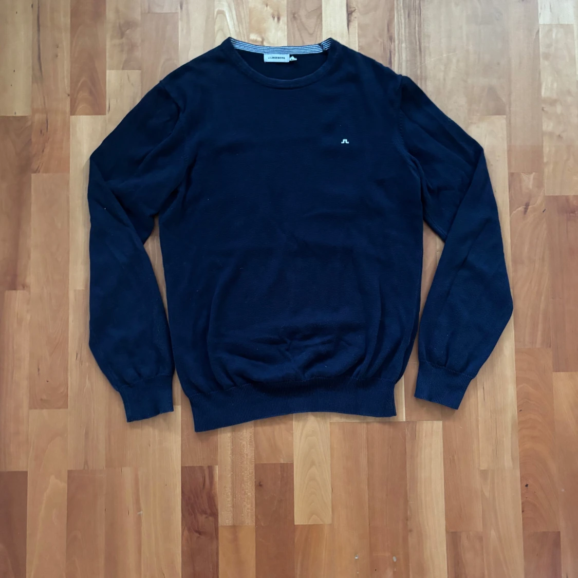 Klassisk mörkblå tröja från J.Lindeberg i storlek S. Tröjan har rund halsringning, diskret logga på bröstet och ribbade muddar vid ärmslut och nederkant. Perfekt för en stilren och enkel look.