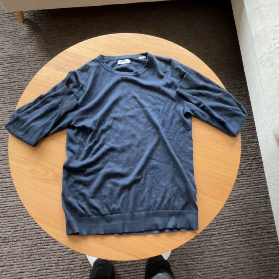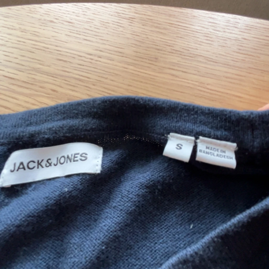 Säljer en stilren mörkblå tröja från Jack & Jones. Tröjan har en klassisk design med rund hals och långa ärmar. Perfekt för en avslappnad look. Skicket är 8,5/10 utan defekter. Priset är inte hugget i sten - kontakta mig vid minsta fundering.