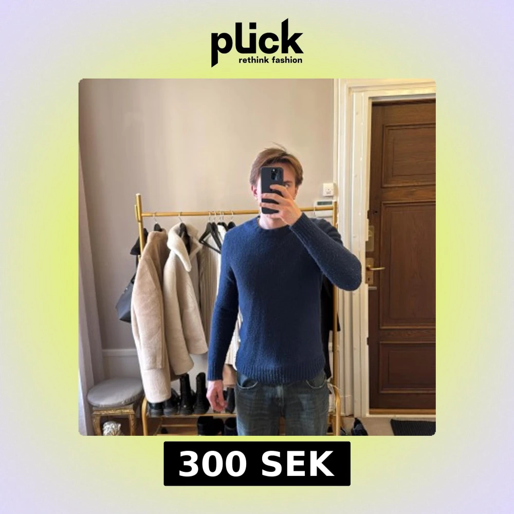 Säljer en stilren mörkblå tröja från Massimo Dutti. Den har en klassisk rund hals och ribbade muddar vid ärmslut och nederkant. 88% ull 12% polyamide. Storlek M. Den är i bra skick men är lite nopprig