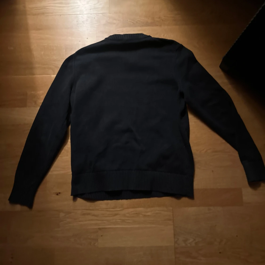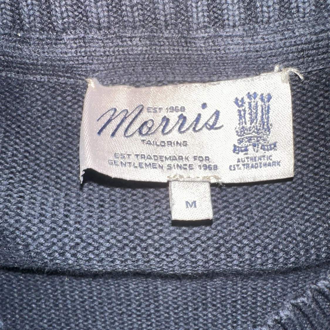 Säljer en stilren svart tröja från Morris med rund halsringning och ett litet broderat emblem på bröstet. Tröjan har långa ärmar och ribbade muddar vid ärmslut och nederkant. Perfekt för en klassisk look.