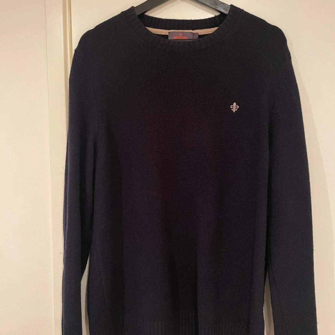 Säljer nu min mörkblåa stickade tröja från Morris. Tröjan är i storlek M och är i ett fint skick. Nypris 1400, mitt pris 650. Vid frågor och funderingar är det bara att höra av sig!