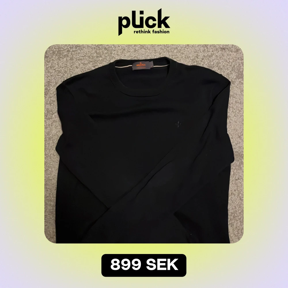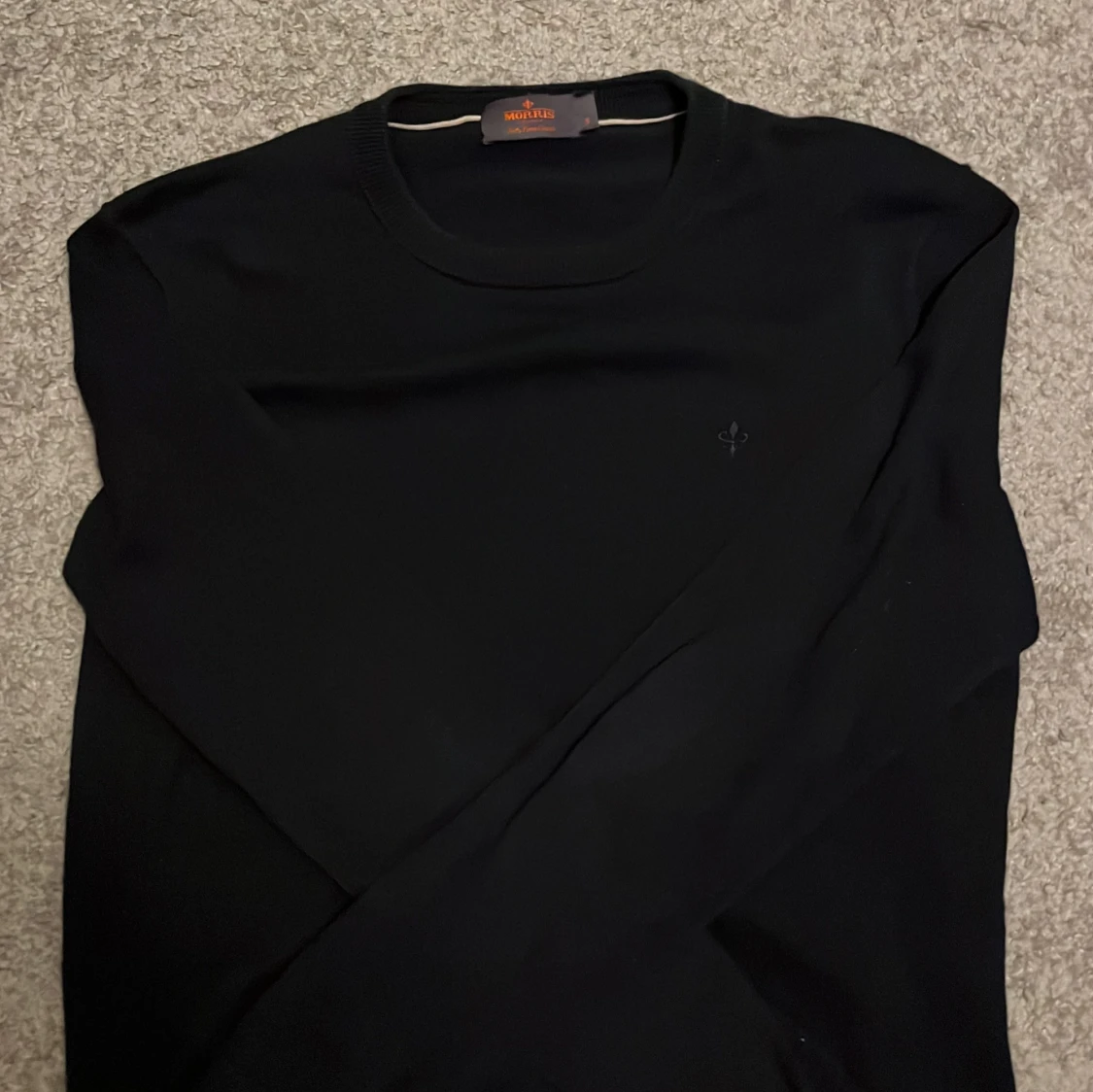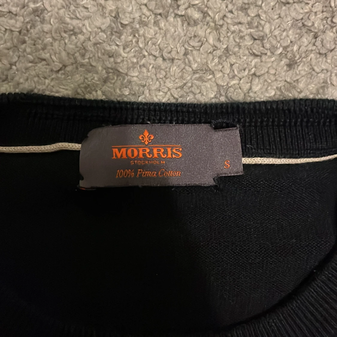 Säljer en stilren mörkblå tröja från Morris i storlek S. Den är gjord av 100% Pima Cotton vilket gör den supermjuk och bekväm. Perfekt för både vardag och fest!