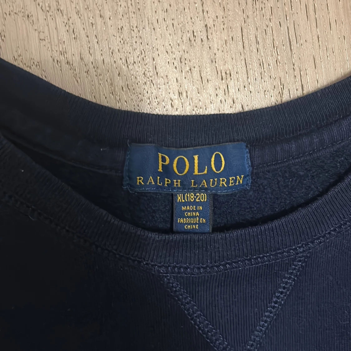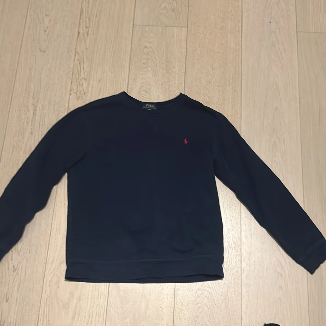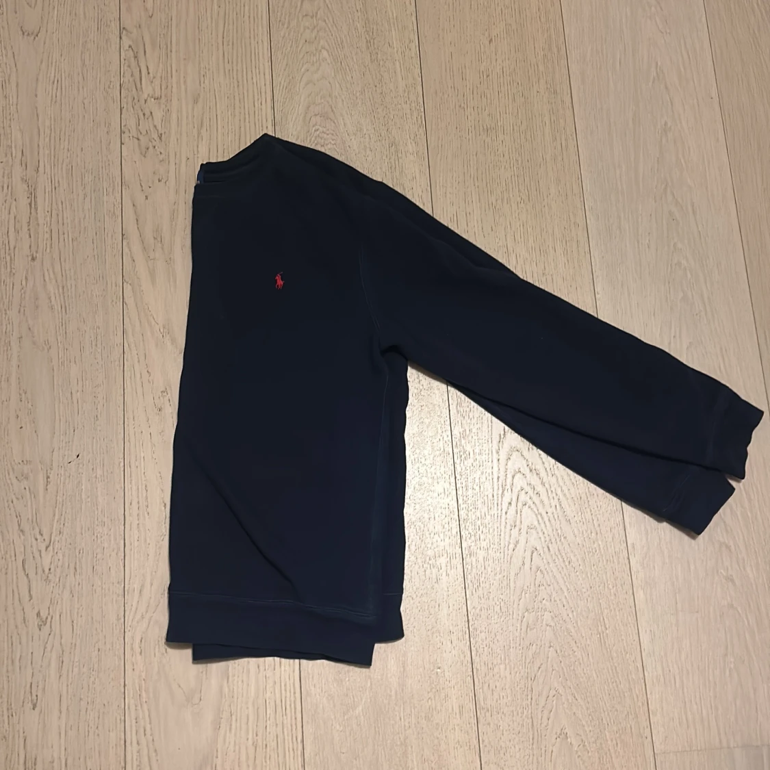 Säljer en snygg mörkblå tröja från Polo Ralph Lauren i storlek XL, Men passar storleken S. Tröjan har en klassisk design med långärmade ärmar och en liten röd logga på bröstet. Perfekt för både vardag och lite finare tillfällen. Superbekväm och stilren! 💙