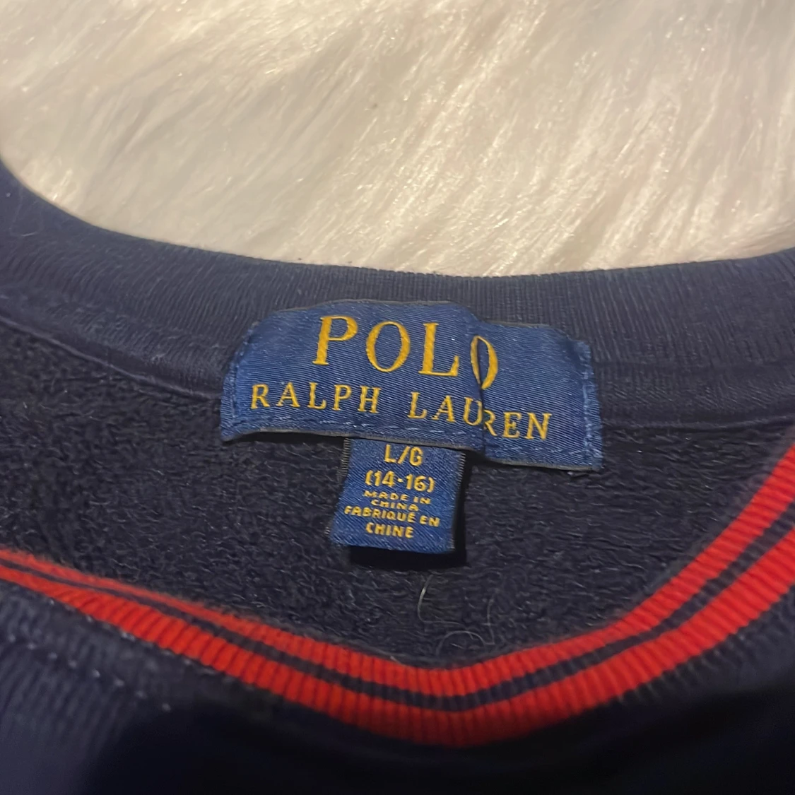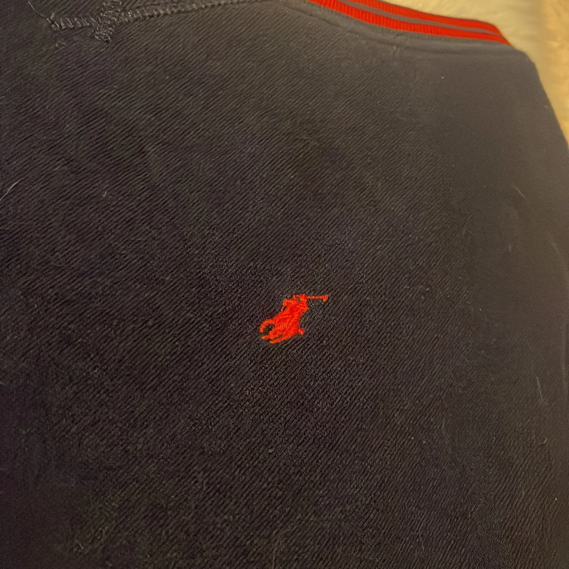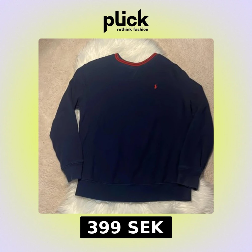 Mörkblå långärmad tröja från Polo Ralph Lauren. Skön och klassisk modell i bomull, perfekt för lager-på-lager under höst och vinter. Finns täcken på användning -skick:6-7/10
