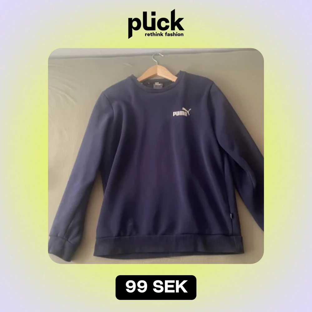 Säljer en snygg och bekväm mörkblå tröja från Puma. Den har en klassisk design med rund hals och långa ärmar. Perfekt för både vardag och träning. Tröjan är i bra skick och redo för en ny ägare!