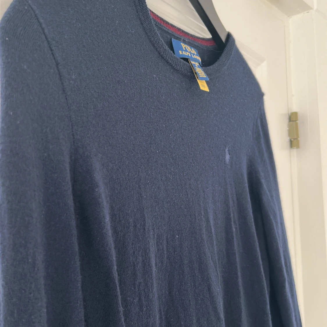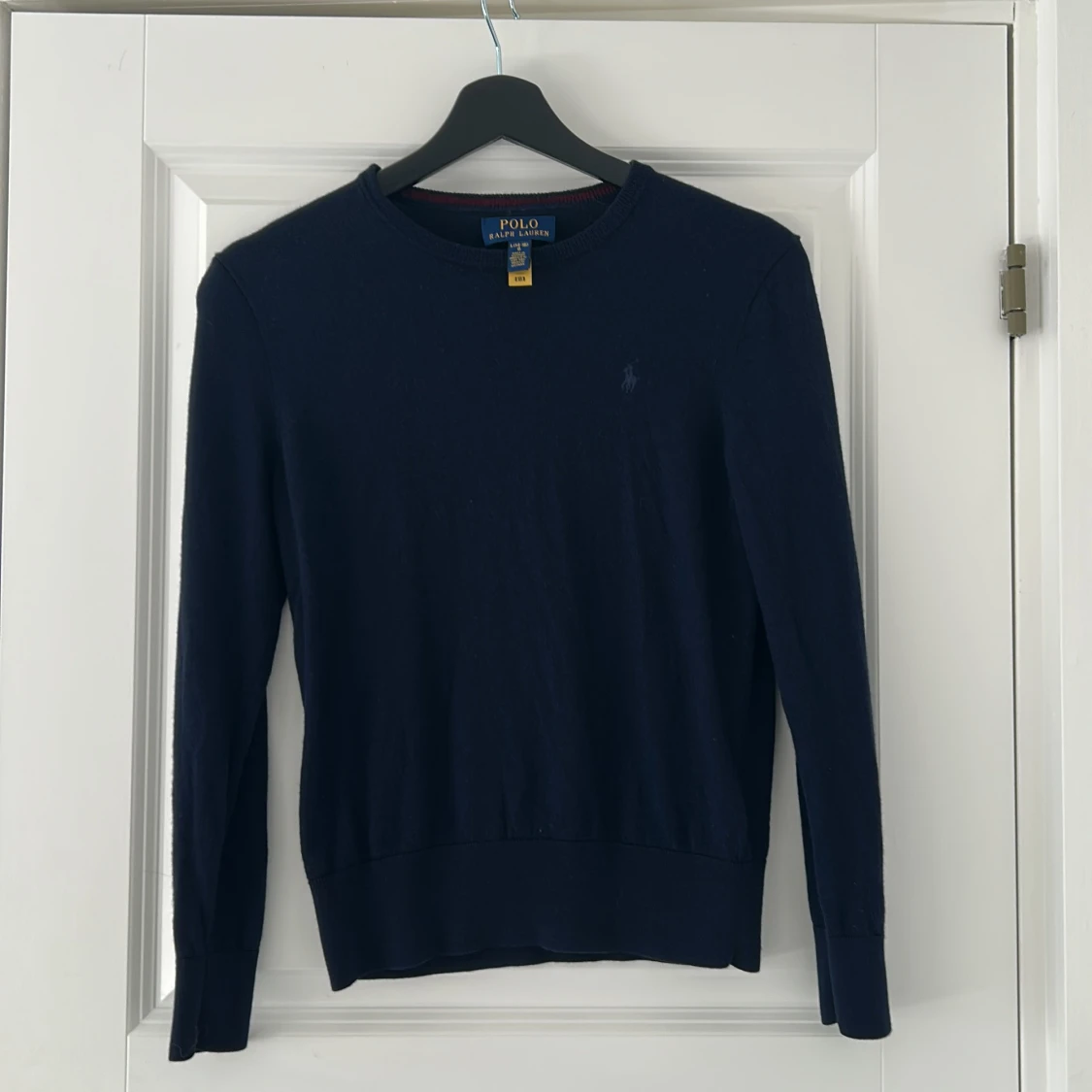 Säljer en stilren mörkblå tröja från Ralph Lauren. Tröjan har långa ärmar och en klassisk rund halsringning. Perfekt för en avslappnad men ändå elegant look. 🧥