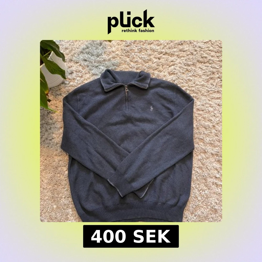 Säljer en snygg mörkblå tröja från Ralph Lauren med dragkedja och broderad logga på bröstet. Tröjan har långa ärmar och en klassisk krage. Perfekt för en stilren look. Ni ser hålet på sista bilden. Men inga fläckar annars