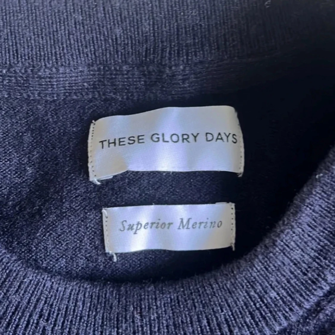 Snygg och stilren mörkblå tröja från These Glory Days i Superior Merino. Perfekt för kyligare dagar med sin mjuka och bekväma passform. Tröjan har långa ärmar och en klassisk rund halsringning.
