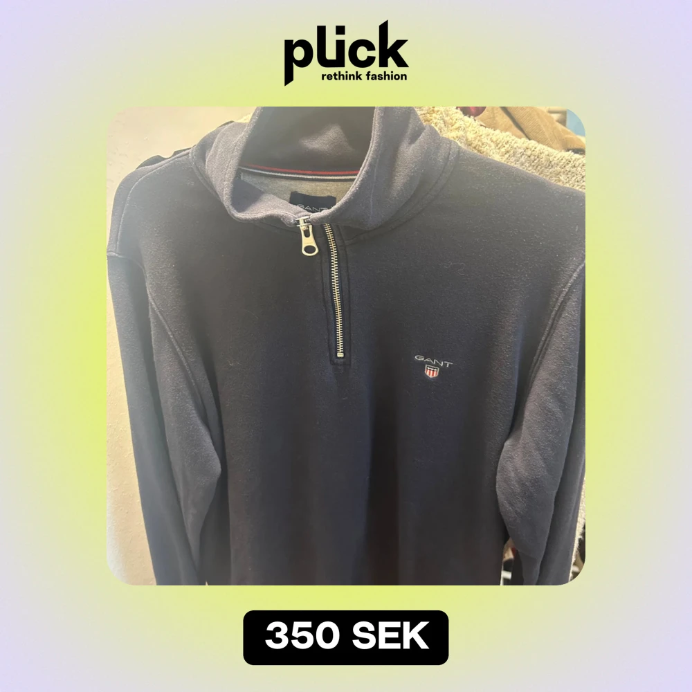 Säljer en snygg mörkblå tröja från GANT i storlek M. Tröjan har en halv dragkedja och GANT-loggan broderad på bröstet.