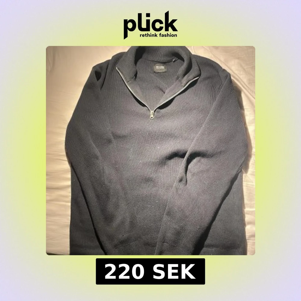 Säljer en stilren mörkblå tröja från Only & Sons. Tröjan har en dragkedja vid halsen och är ribbad för en snygg look. Perfekt för kyligare dagar. L men sitter mer som något mellan M och L