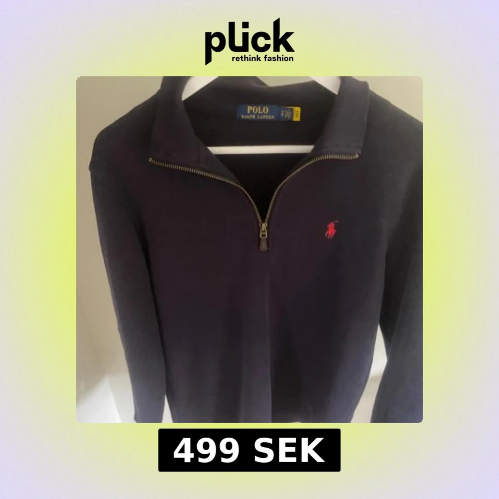 Säljer en mörkblå långärmad tröja från Polo Ralph Lauren med halv dragkedja och röd broderad logga på bröstet. Tröjan är i storlek small. Klassisk och stilren modell med krage, perfekt till många tillfällen. Använd fåtal gånger!