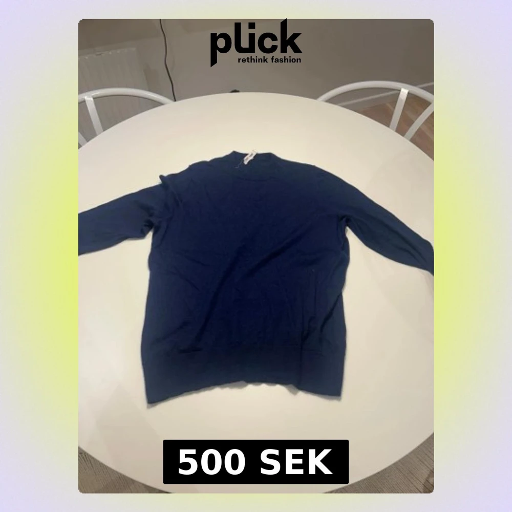 Snygg mörkblå tröja ifrån soft goat. Den är i strl M och är i 30% cahsmere, resten merionull. Den är i bra skick förutom ett gammalt hål som är igensytt men de är inge man märker av, bild 3. Pris kan självklar diskuteras och vid frågor så Skirv gärna. Nytt pris runt 1700, mitt pris 500.