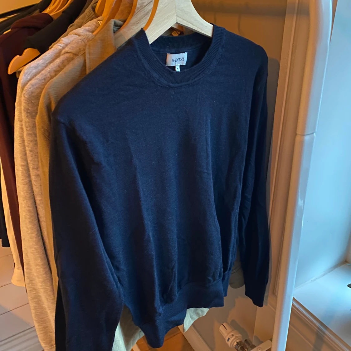 Mörkblå stickad tröja i 100% ull från Sandö | Storlek M passar S | Endast använd 1 gång
