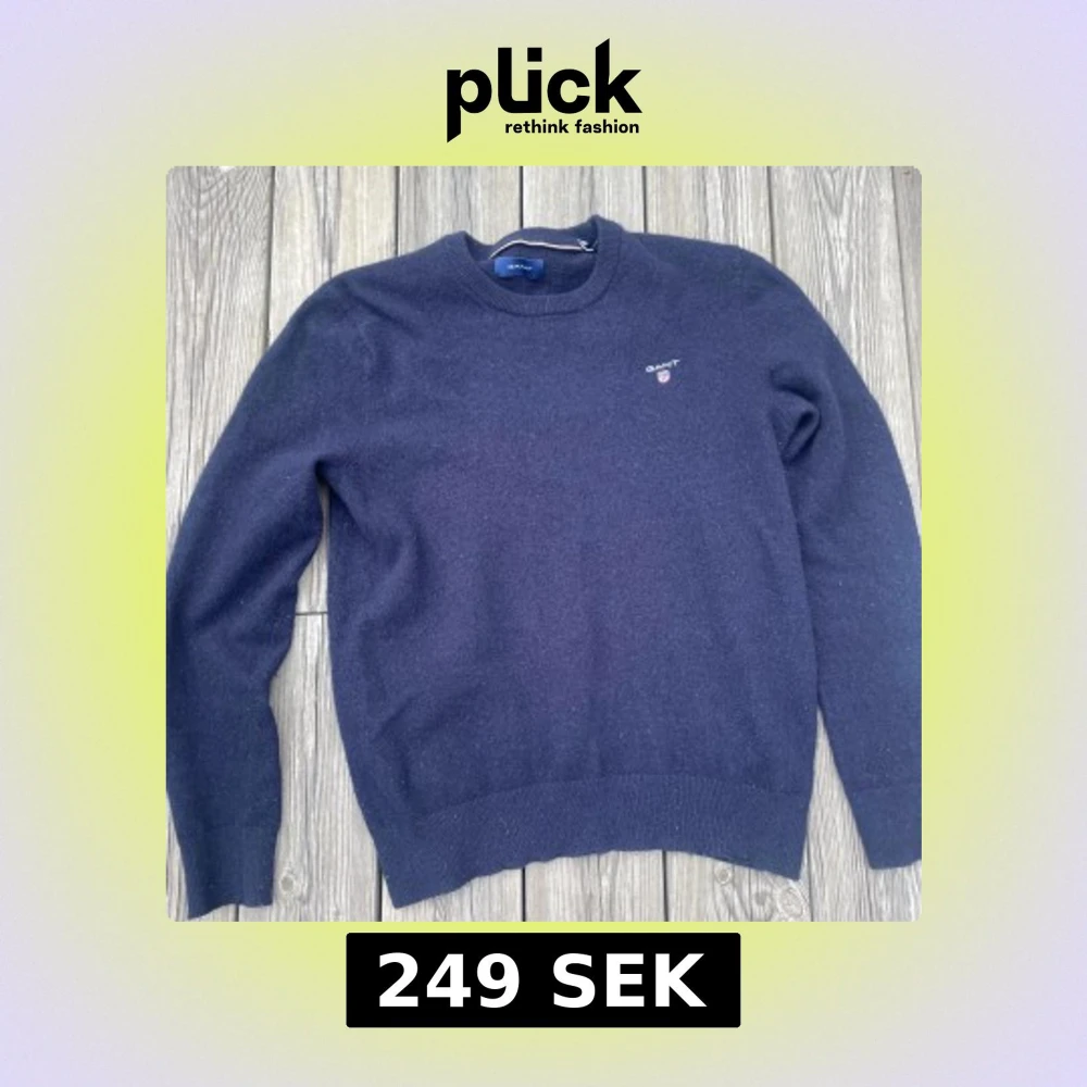 mörkblå stickad tröja från Gant i extrafine ull. Storlek är small men eftersom den krymt lite så är den perfekt för dig som har storlek XS. Passform är Slim fit. Pris kan såklart diskuteras🙂