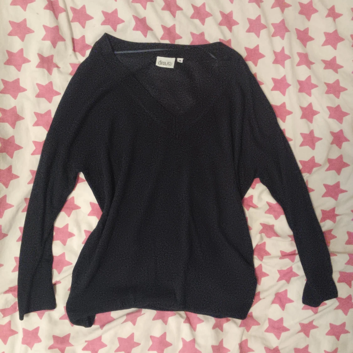 Mörkblå tröja (den ser svart ut i min dåliga kamera sorry) med v-ringning ganska tunn. Långärmad och är perfekt för lager-på-lager.