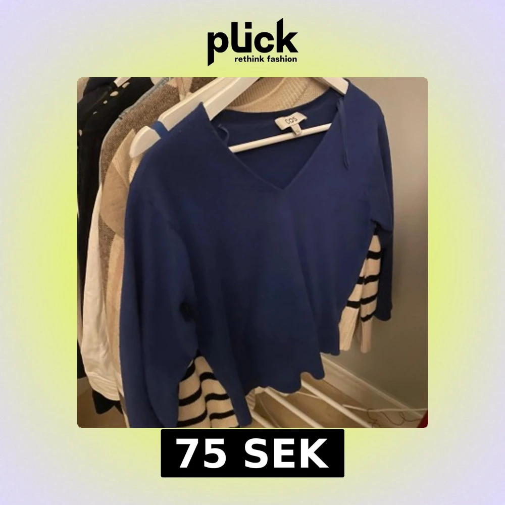 Mörkblå v-ringad tröja från COS i mjukt material. Tröjan har lång ärm och en klassisk, stilren design som passar perfekt till jeans eller kjol. Enkel och snygg modell med normal passform.
