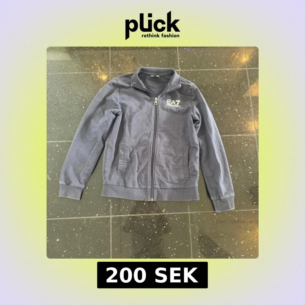 Snygg mörkblå ziptröja från EA7 Emporio Armani med vit logga på bröstet. Tröjan har hel dragkedja, ståkrage och två fickor framtill. Tillverkad i mjuk bomull, perfekt för en chill och sportig look. Väldigt bra skick.