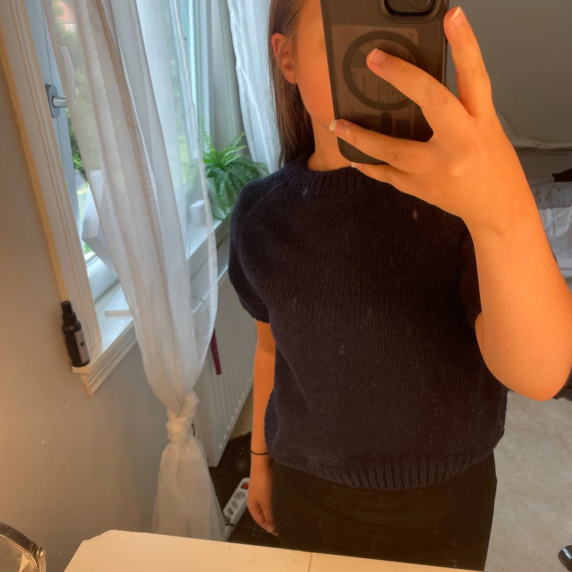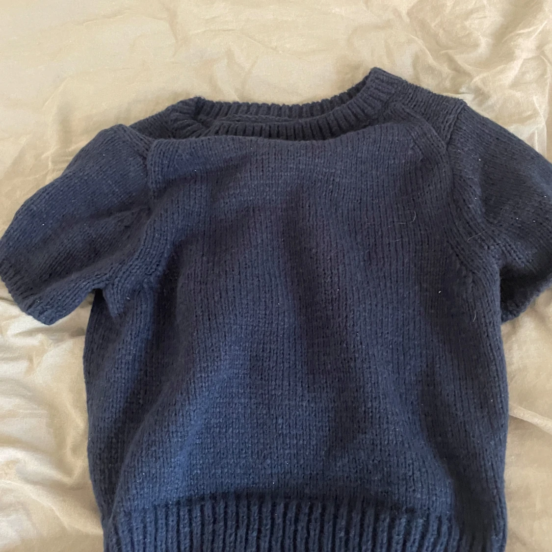 Mysig mörkblå stickad tröja med korta ärmar. Fint skick ❤️❤️