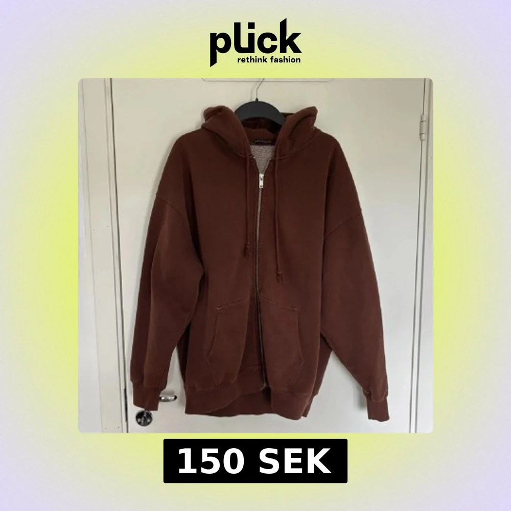 Mysig brun hoodie från Brandy Melville med dragkedja och huva. Oversized passform, stora fickor framtill och snörning i huvan. Perfekt för chill dagar och enkel att matcha med jeans eller leggings.