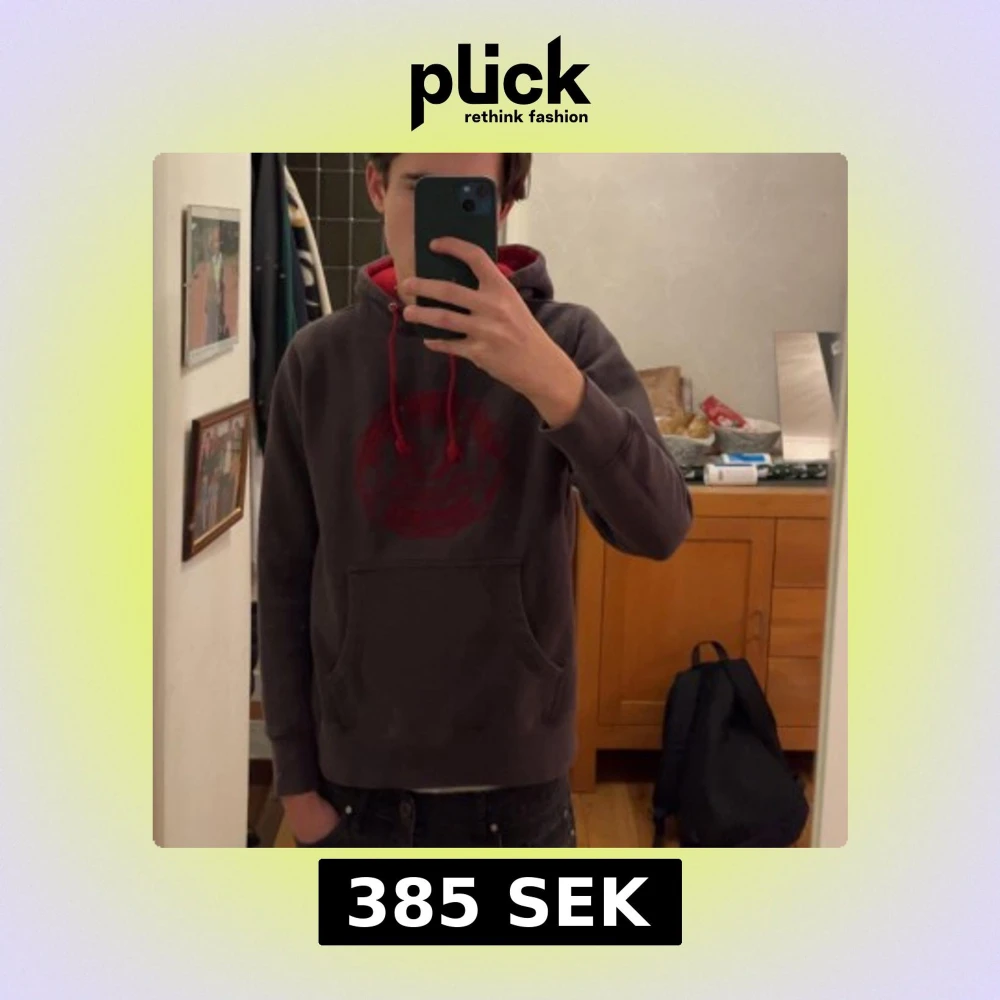 Tja! Säljer en mörkgrå hoodie med en stor röd logga på framsidan. Hoodien har en röd insida i huvan och matchande röda snören. Säljer tröjan då den blivit för liten för mig men den är fortfarande i bra skick. Perfekt för en avslappnad stil.
