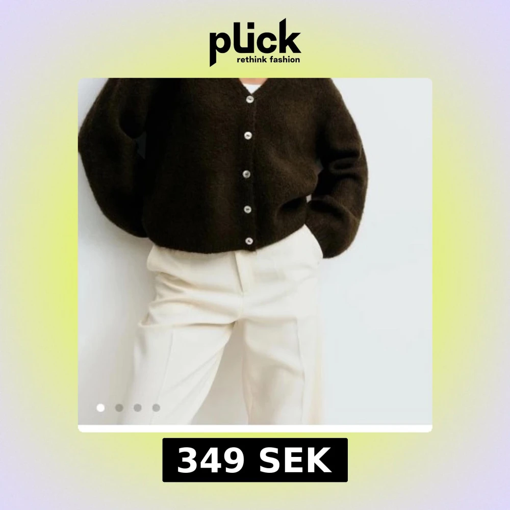 Säljer en mysig mörkbrun kofta med v-ringning och pärlemorskimrande knappar framtill. Koftan har en loose passform och är stickad i ett fluffigt material som känns både trendigt och bekvämt. Perfekt att slänga på sig över en topp för en chill look. Helt slutsåld på hemsidan och jag har endast använt den på en tiktok. Prislappen är kvar💕💕