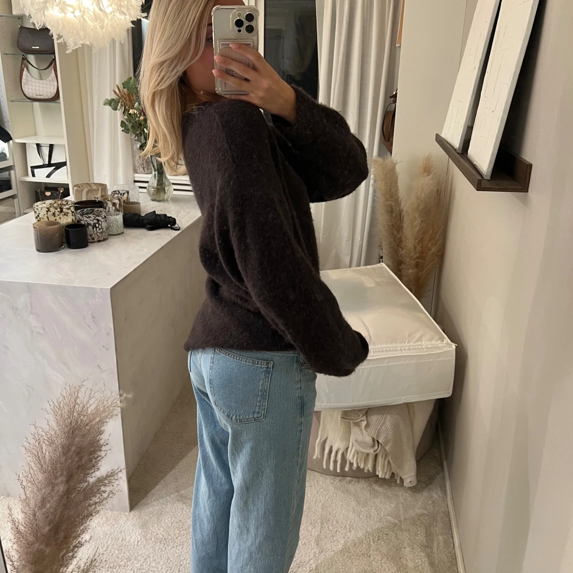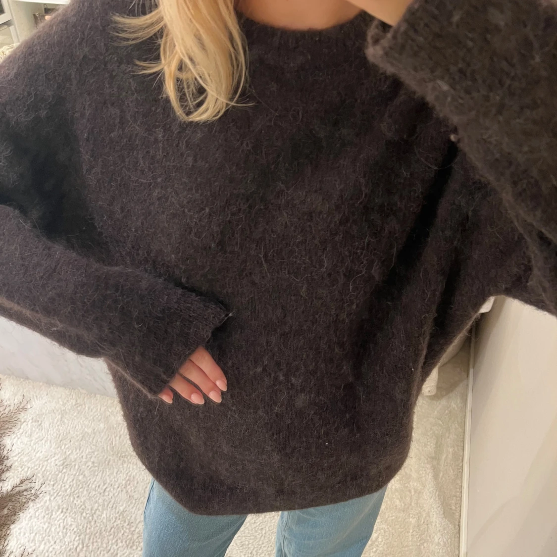 Mysig mörkbrun stickad tröja från H&M i ull- och alpacablandning. Tröjan har en loose passform, rund hals och långa ärmar. Perfekt för dig som gillar en enkel och chill stil med lite fluffig känsla. Köpt för original priset!! Endast använd någon enstaka gång!