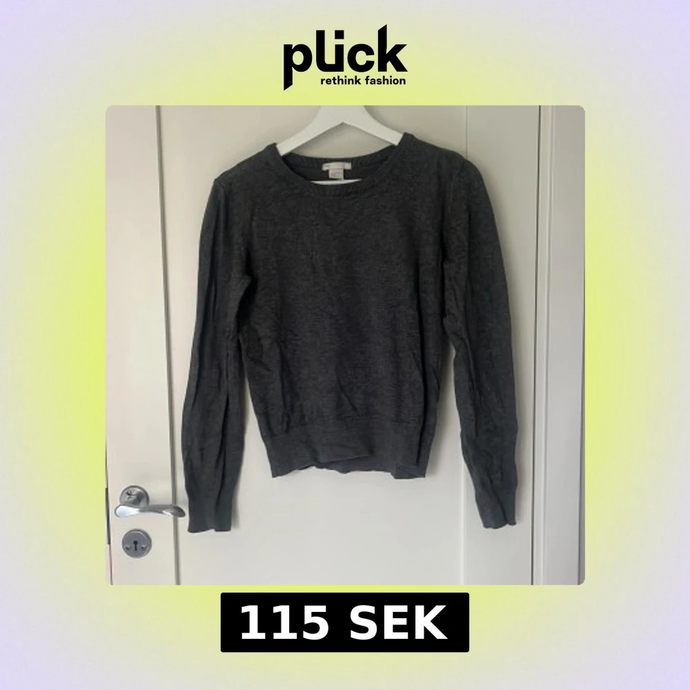 En enkel och stilren mörkgrå tröja från H&M Basic. Tröjan har rund halsringning, långa ärmar och ribbade muddar vid hals och ärmar.