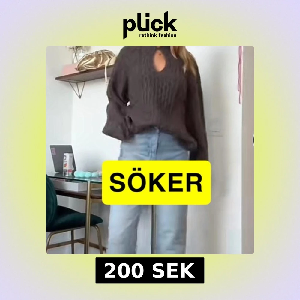 Söker en mörkgrå/brun stickad tröja med en nyckelhålsdetalj vid halsen från Na-kd. Tröjan har långa ärmar och en avslappnad passform, söker i storlek S/M