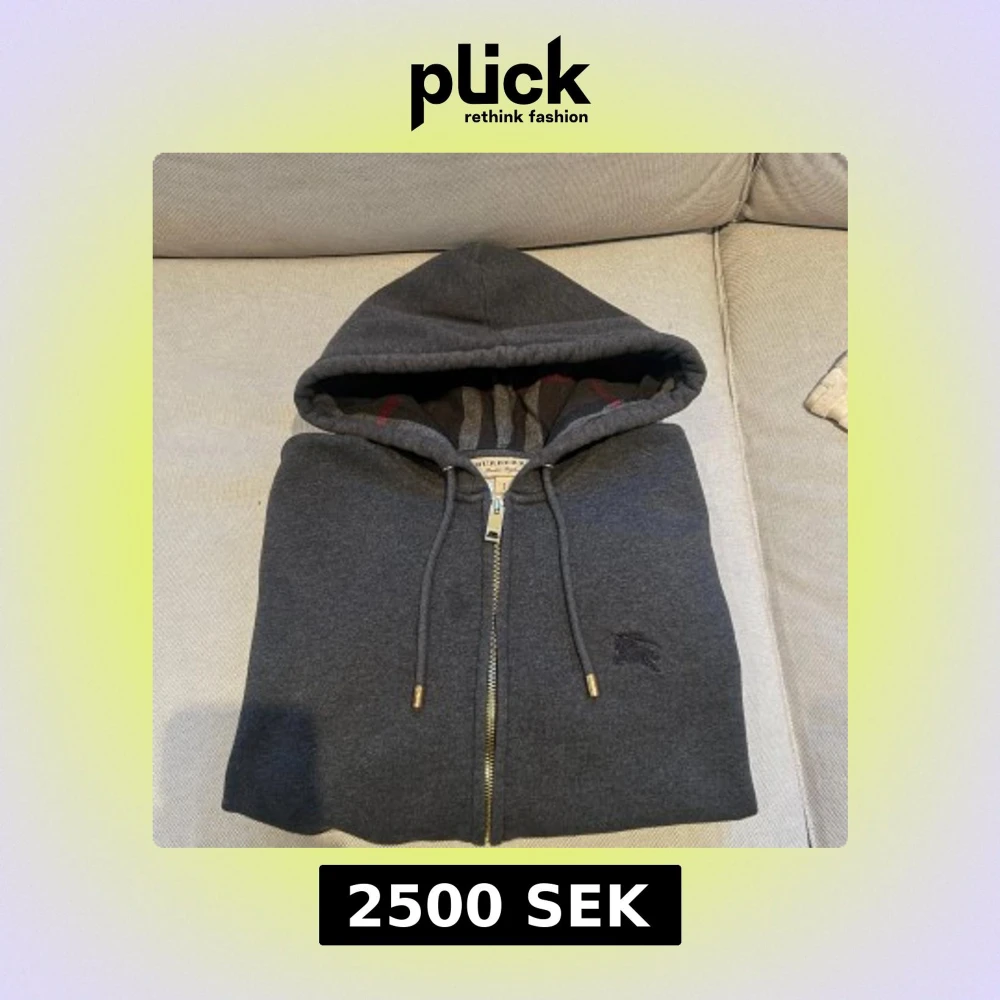 Snygg mörkgrå hoodie från Burberry med klassiskt rutigt foder i huvan och guldfärgade detaljer på snörena. Tröjan har dragkedja framtill, fickor och broderad logga på bröstet. Tillverkad i mjuk bomull och polyester för extra komfort.