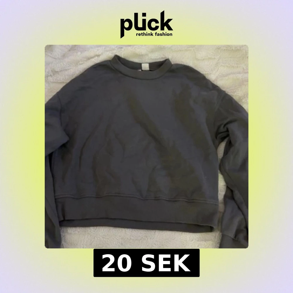 Säljer en enkel och stilren mörkgrå croppad sweatshirt med rund halsringning och långa ärmar. Perfekt för en avslappnad look och passar till det mesta. Mjuk och bekväm med ribbade muddar vid ärmslut och nederkant.