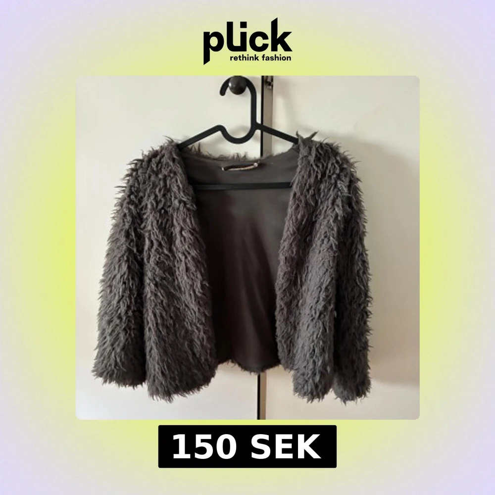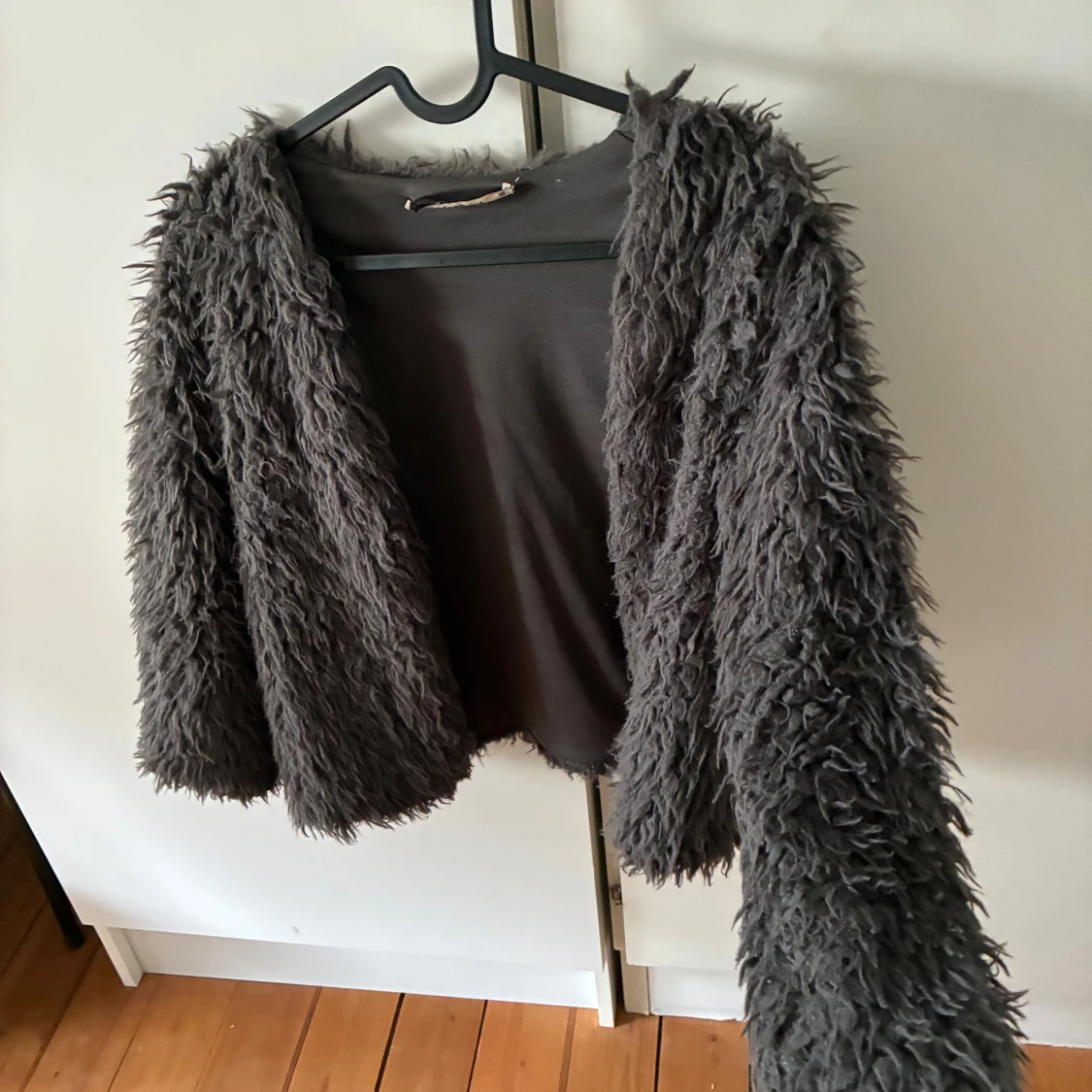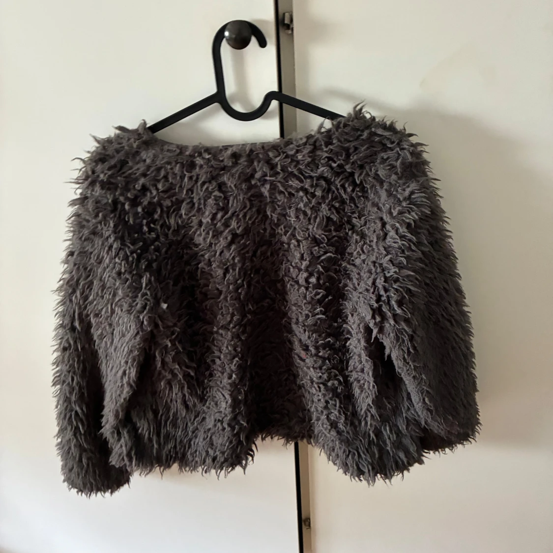 Mörkgrå fluffig pälskofta