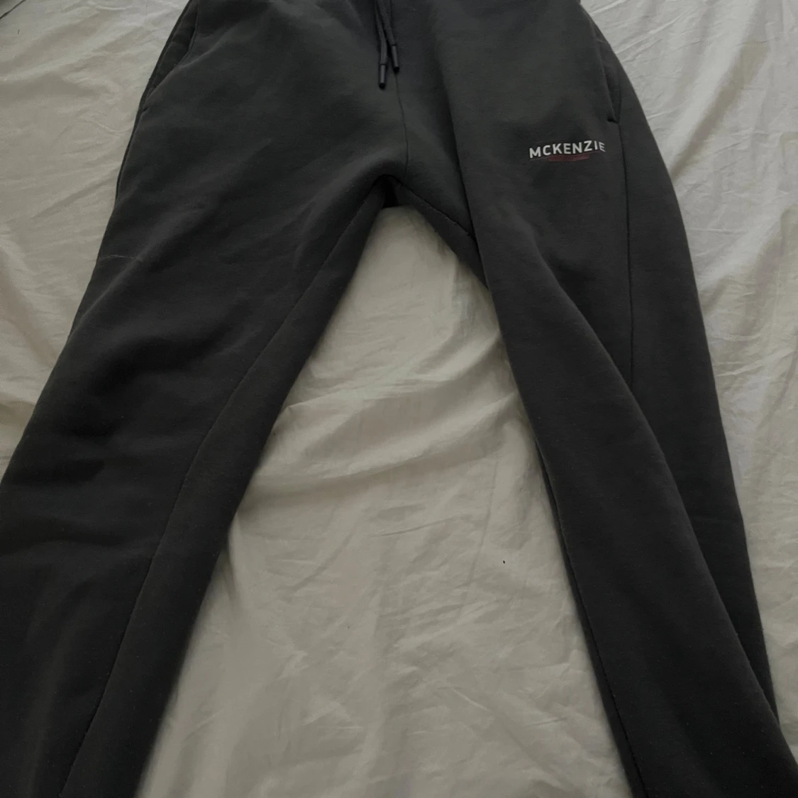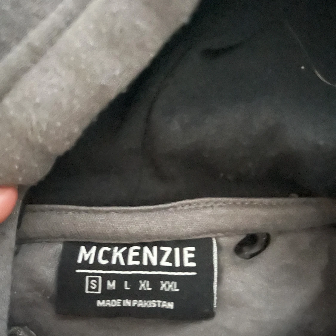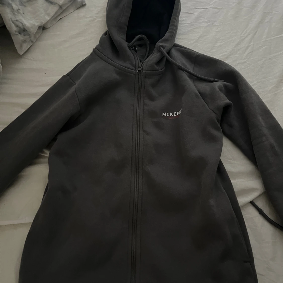 Mörkgrå hoodie från McKenzie med dragkedja framtill och huva med snörning. Tröjan har lång ärm och en enkel, clean design med liten logga på bröstet. Perfekt för chill dagar eller när du vill ha en avslappnad stil.