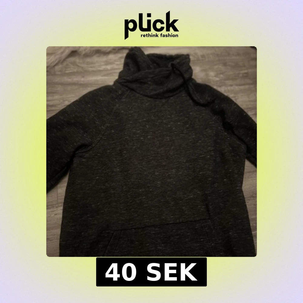 Mysig mörkgrå hoodie med hög krage och snörning. Tröjan har en stor magficka och är tillverkad i ett mjukt material som passar perfekt när det är kallt ute. Långärmad och enkel att matcha med jeans eller joggers.