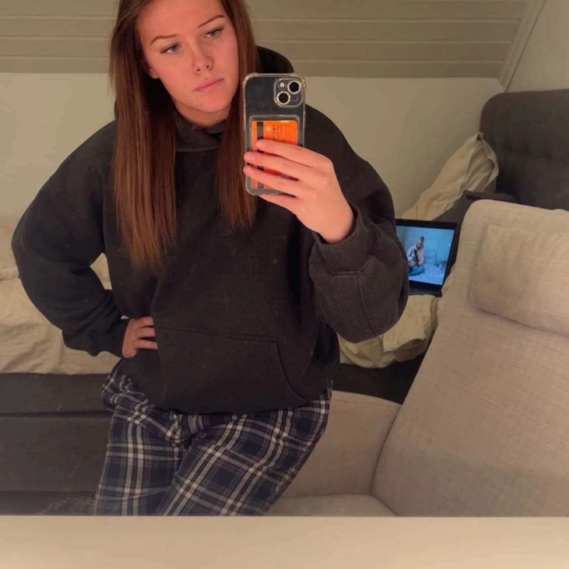 Säljer en mörkgrå hoodie med texten 'Life Attitude' och ett hjärta på ärmen. Har knappt använt så är i nytt skick.