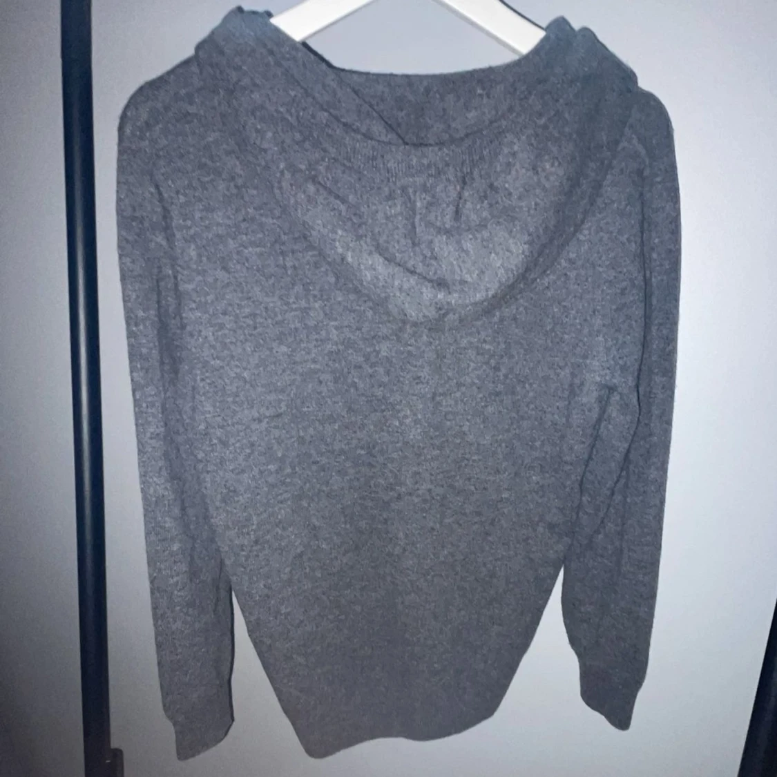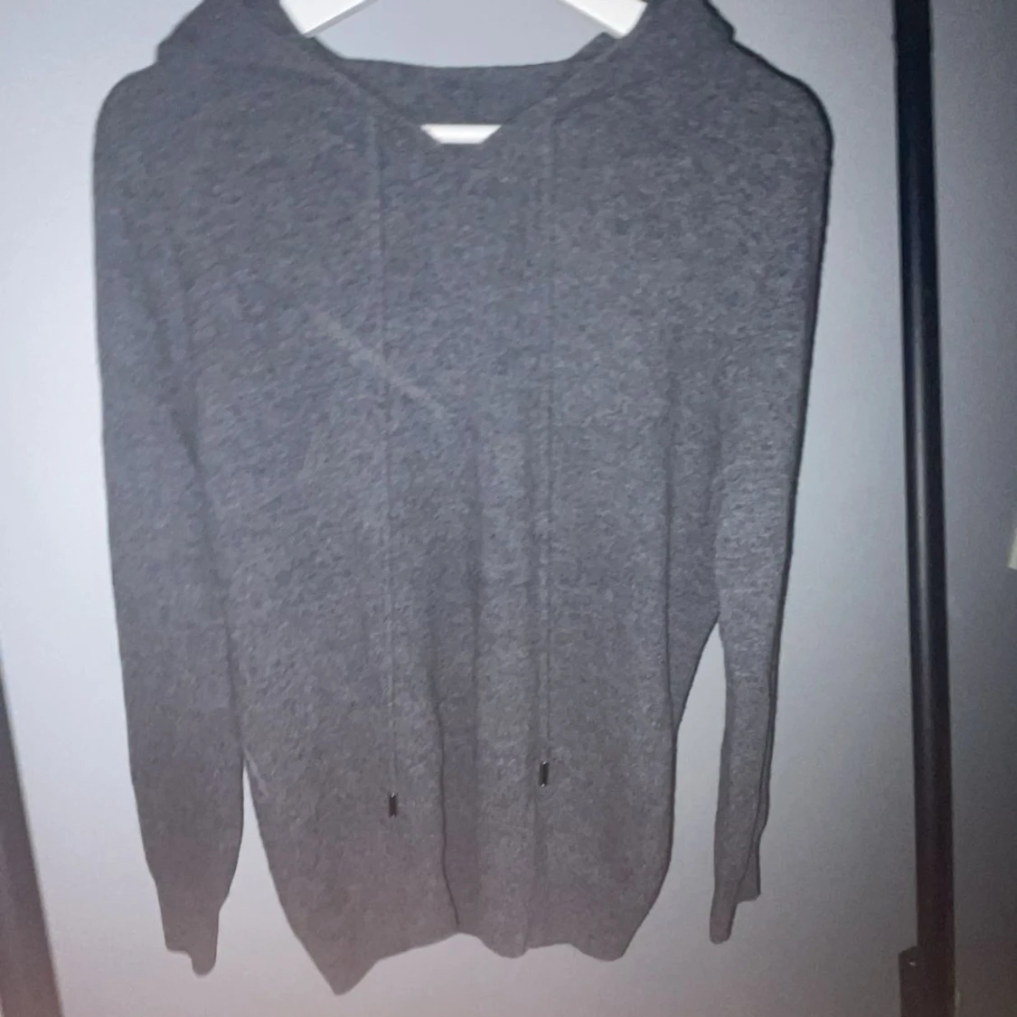 En mörkgrå Kashmir hoodie. Väldigt unik färg skulle jag säga. Otroligt snyggt och varm. Med metal bitar vid snörea. Jag vill ha 749kr men priset kan diskuteras om någora fråga säl dom då. Helt ny all dig ens provat på 10/10