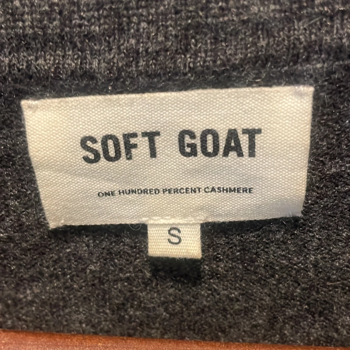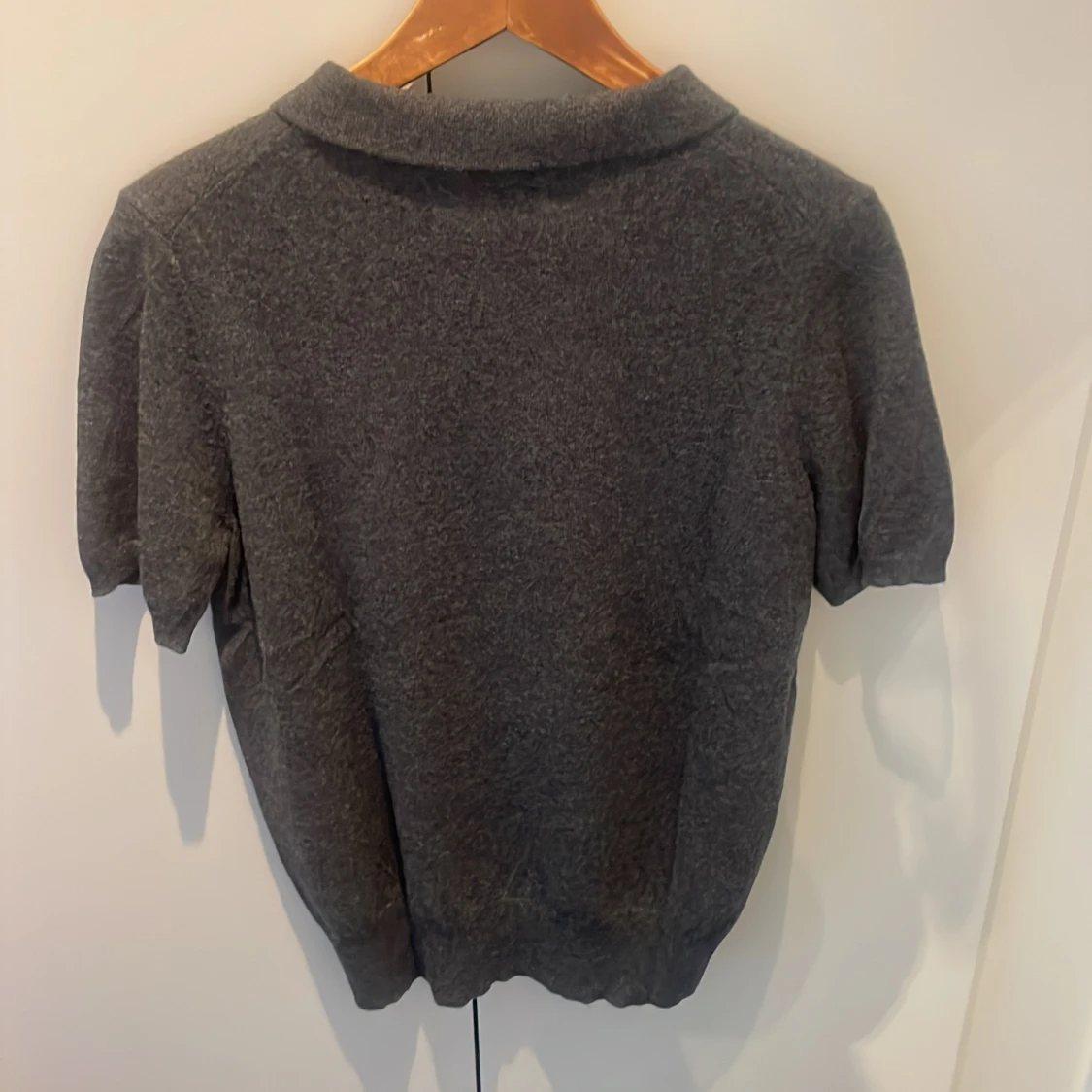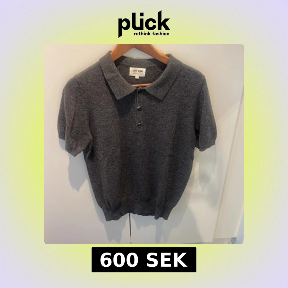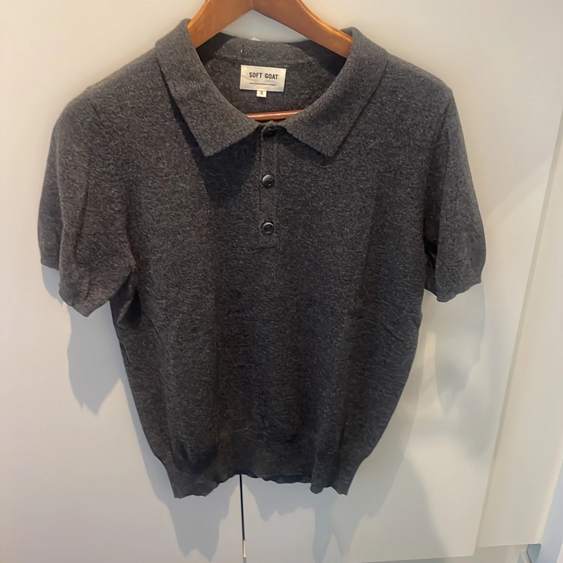Säljer en mörkgrå pikétröja från Soft Goat i 100% kashmir. Tröjan har klassisk krage, tre knappar framtill och korta ärmar. Mjuk och lyxig känsla, perfekt för dig som gillar stilrena och bekväma plagg. Passar dig som vill ha en clean look med premiumkänsla.