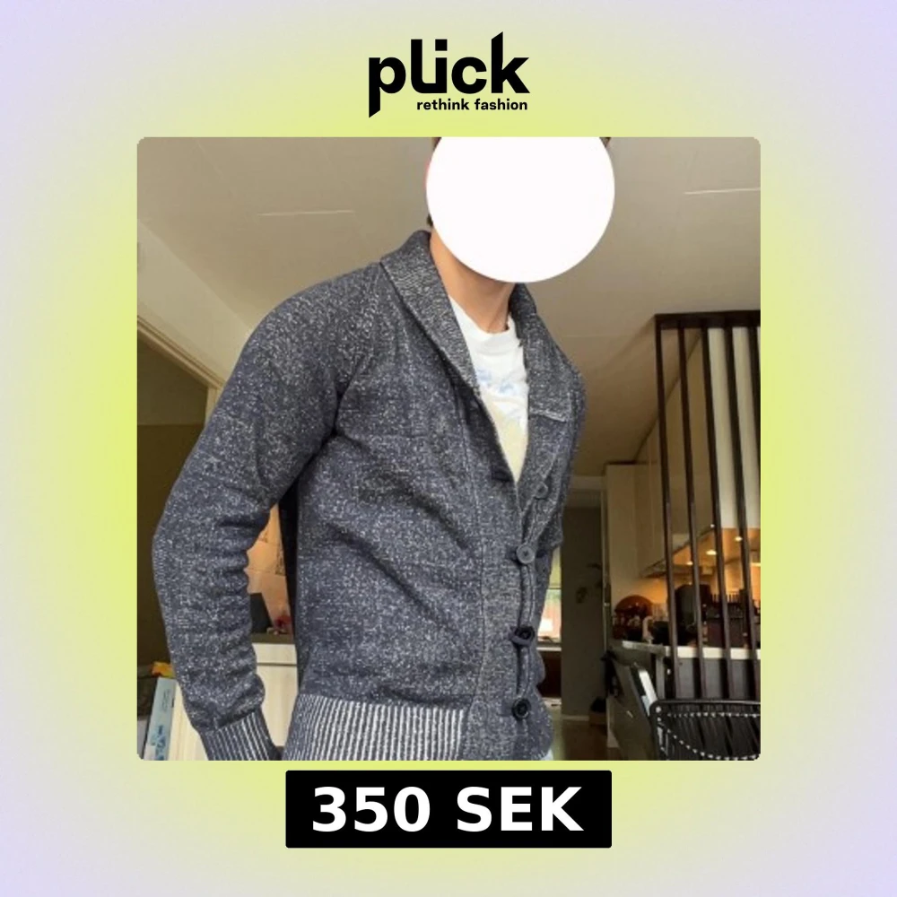 Säljer en marinblå/mörkgrå stickad kofta från Springfield med snygg krage och knäppning framtill. Koftan har lång ärm och ribbade muddar samt nederkant. Perfekt för lager-på-lager och chillare dagar.
