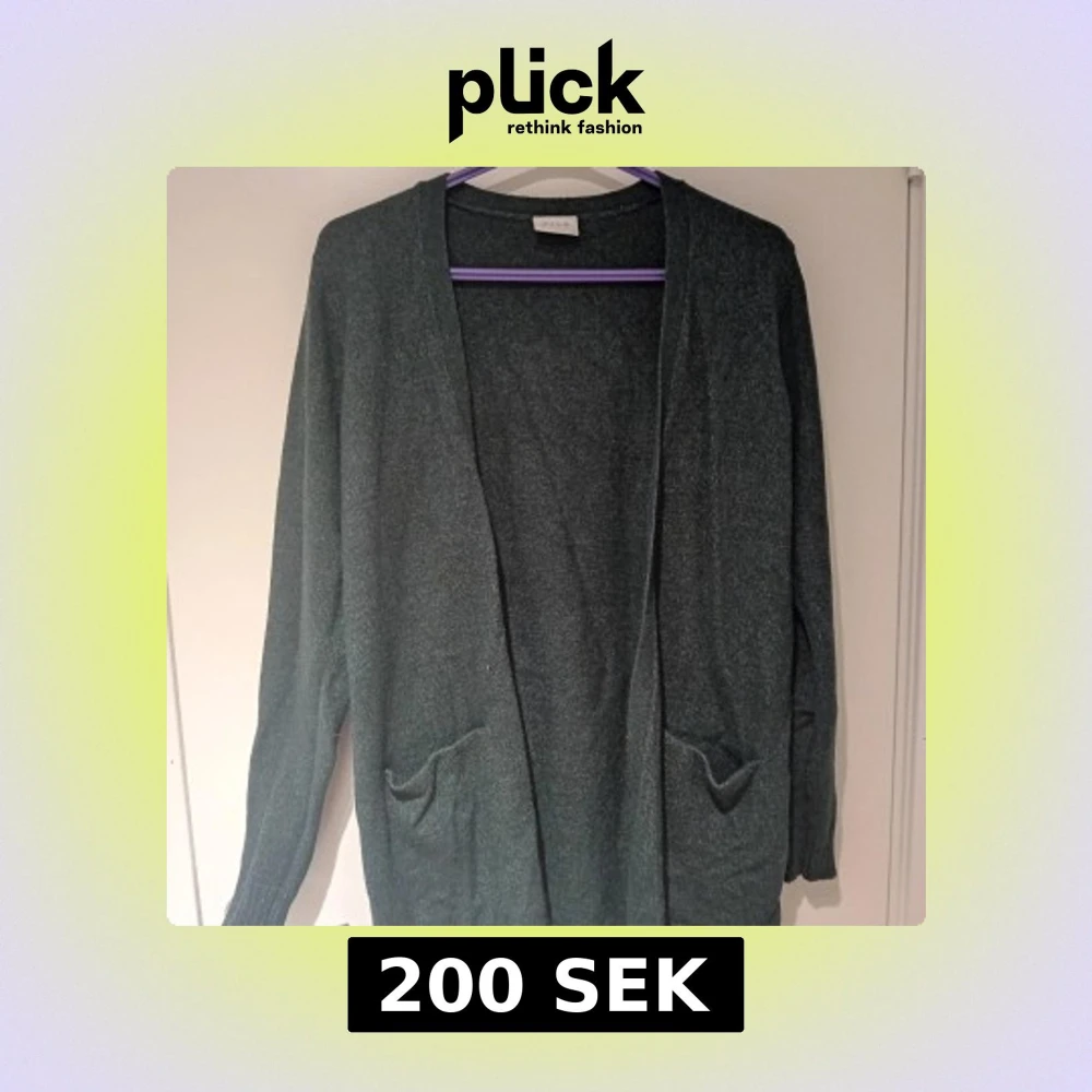 Säljer en stilren mörkgrön kofta från Zara. Den har en öppen design med långa ärmar och två praktiska fickor framtill. Perfekt för lager-på-lager under kyligare dagar.