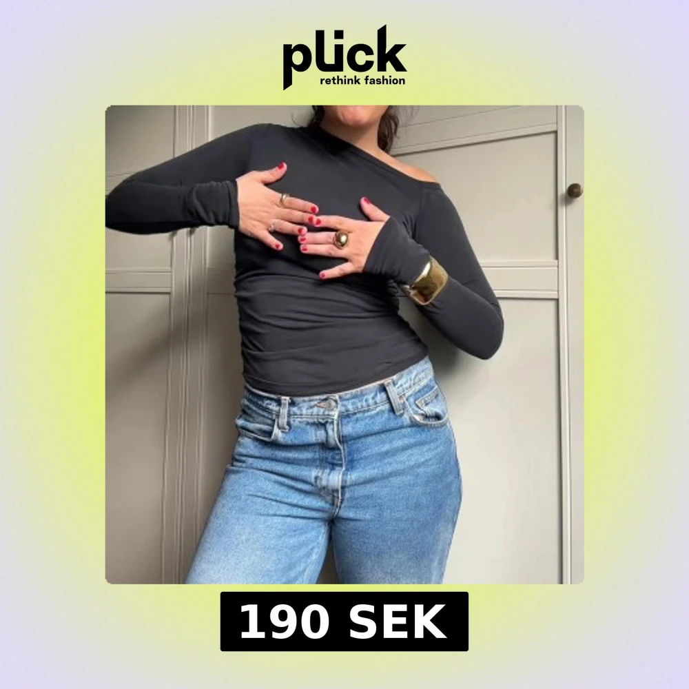 Mörkgrå långärmad oneshoulder-topp frön Weekday🫶