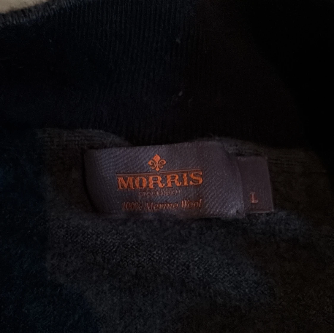 Snygg mörkgrå tröja från Morris i 100% merinoull. Klassisk modell med half zip och diskret broderad logga på bröstet. Långärmad och ribbade muddar för en clean look. Perfekt för chill höst- eller vinterstil. Liten i storlek, S-M!