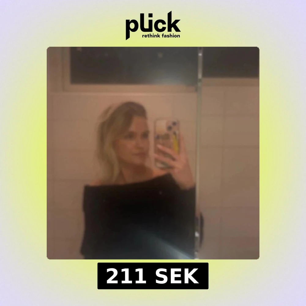 Säljer en svart stickad tröja med offshoulder-modell och bred ribbad kant upptill. Tröjan har lång ärm och är perfekt för dig som vill ha en stilren men ändå trendig look. Supermjuk och skön att bära till både jeans och kostymbyxor.
