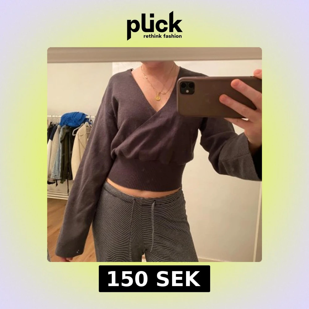 Säljer en stilren mörkgrå omlottopp med långa ärmar. Toppen är croppad och har en v-ringad design som ger en elegant touch. Perfekt för att matcha med både jeans och kjol. Köpt på bikbok och endast testad!