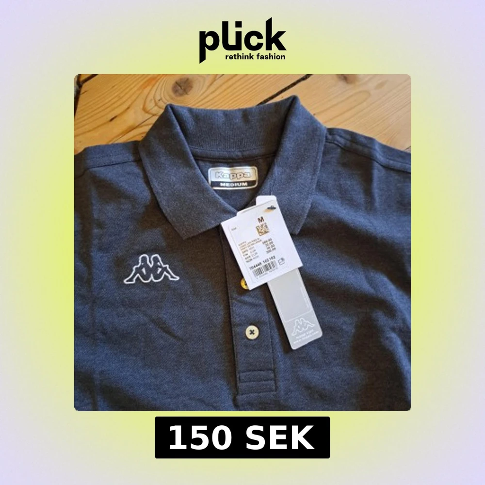 Snygg mörkgrå pikétröja från Kappa med klassisk krage och tre knappar framtill. Tröjan har korta ärmar och Kappas ikoniska logga broderad på bröstet. Perfekt för en clean och sportig stil. Tillverkad i mjuk bomull för skön känsla, den är även helt oanvänd.