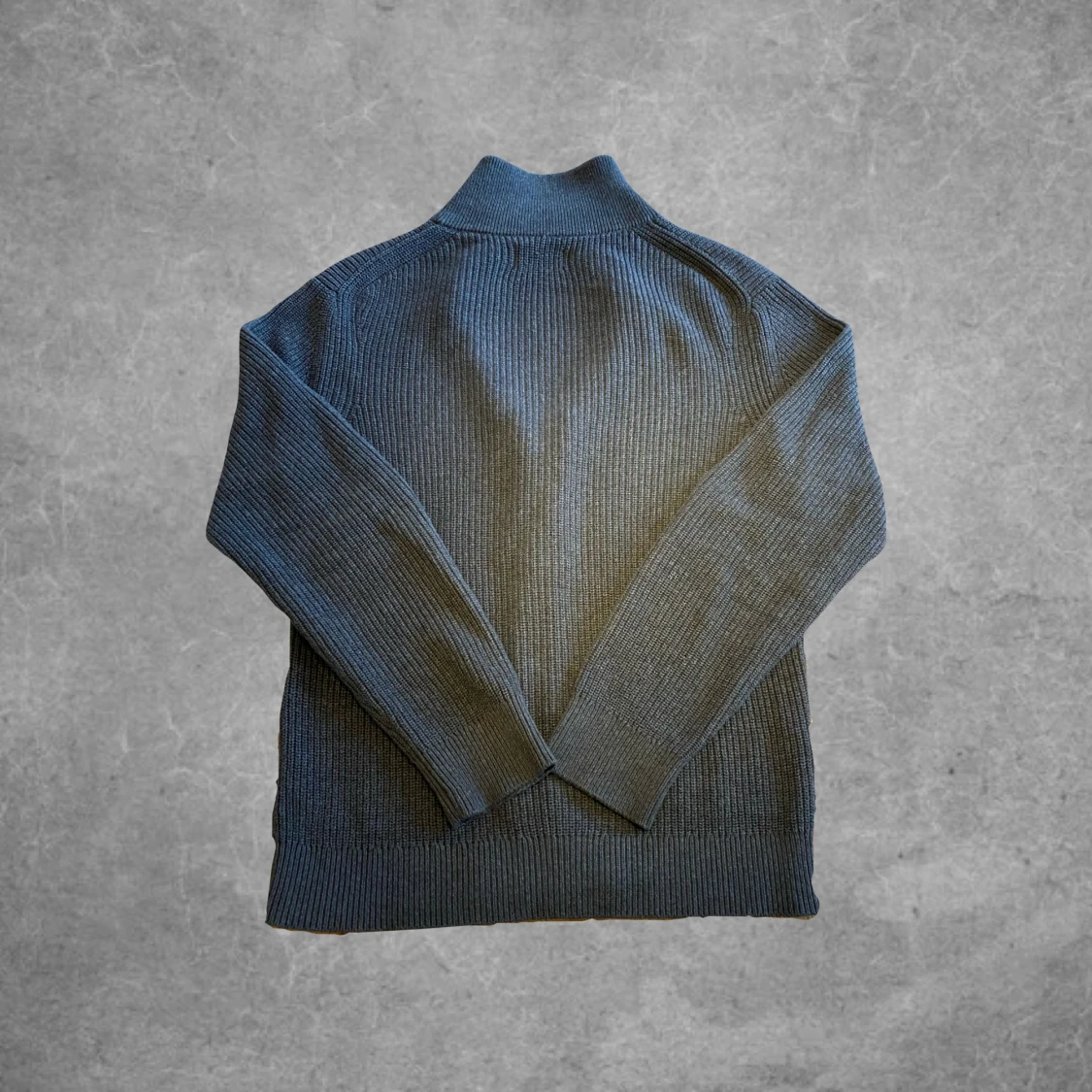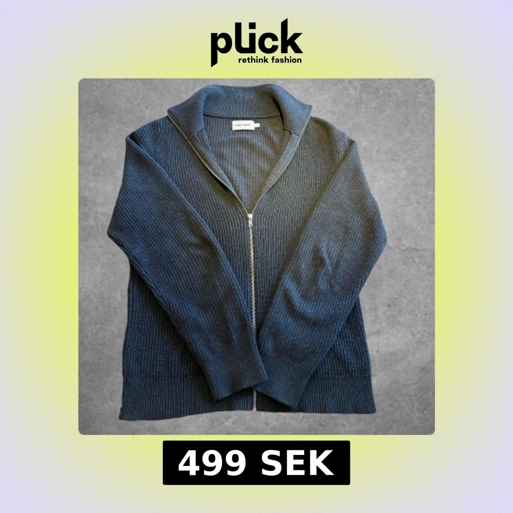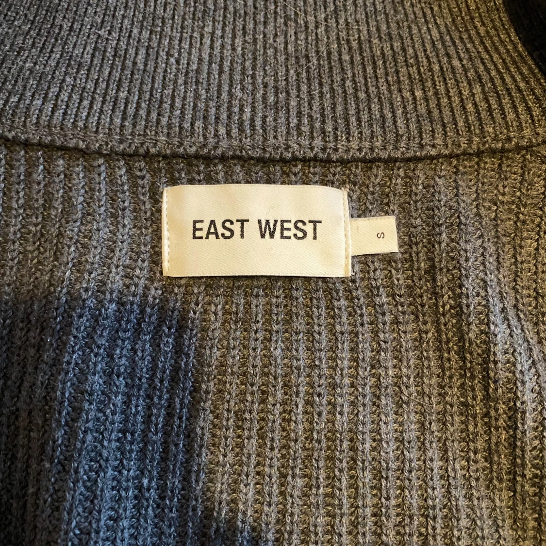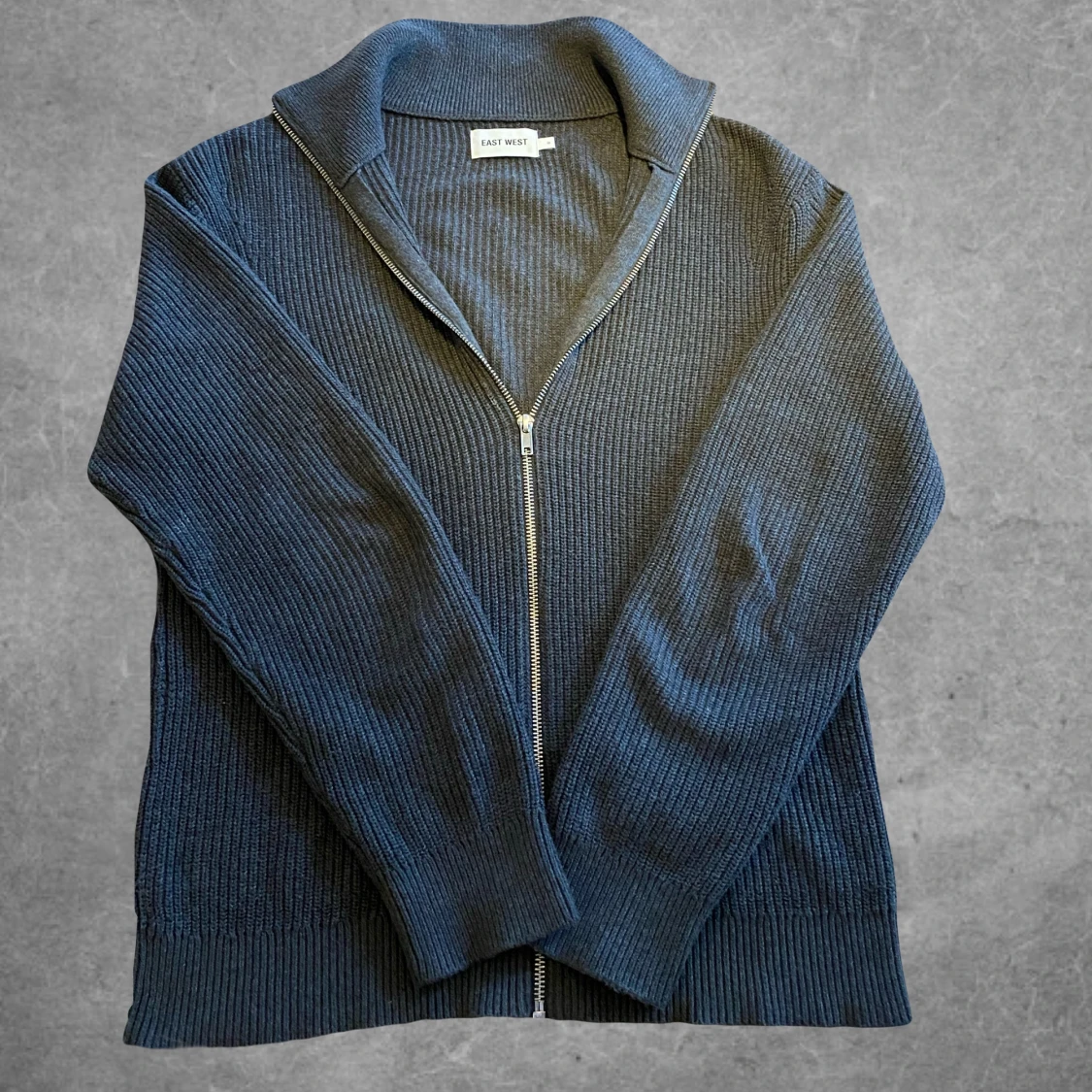 Säljer en stilren mörkgrå kofta från East West i 100% bomull. Koftan har en dragkedja framtill och är ribbad för en snygg textur. Perfekt för kyligare dagar.