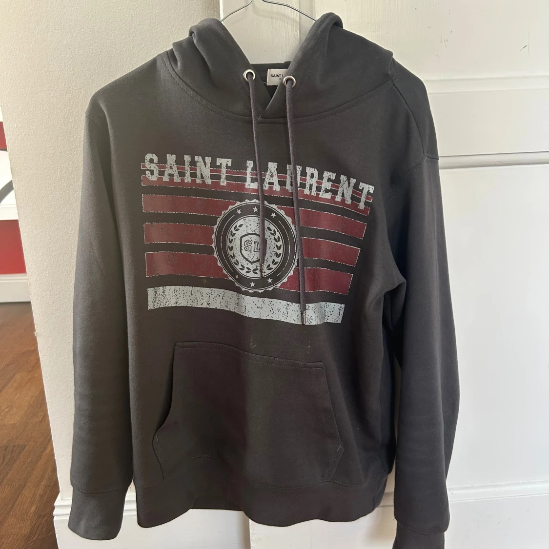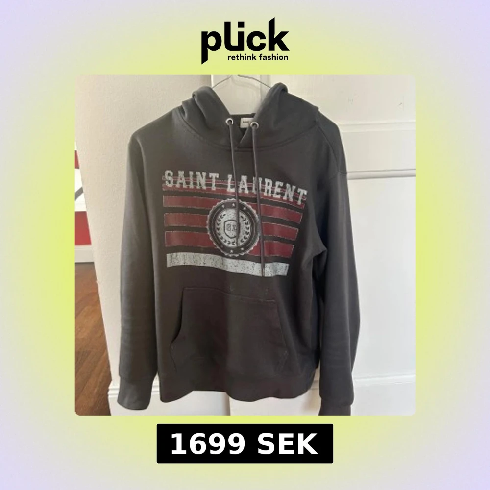 Säljer nu min snygga hoodie ifrån Saint Laurent, tröjan är i mycket bra skick! Jag säljer den för att den är lite för liten. Tröjan passar dig som är runt 170-180 Storlek : S. Hör av dig vid minsta fundering!
