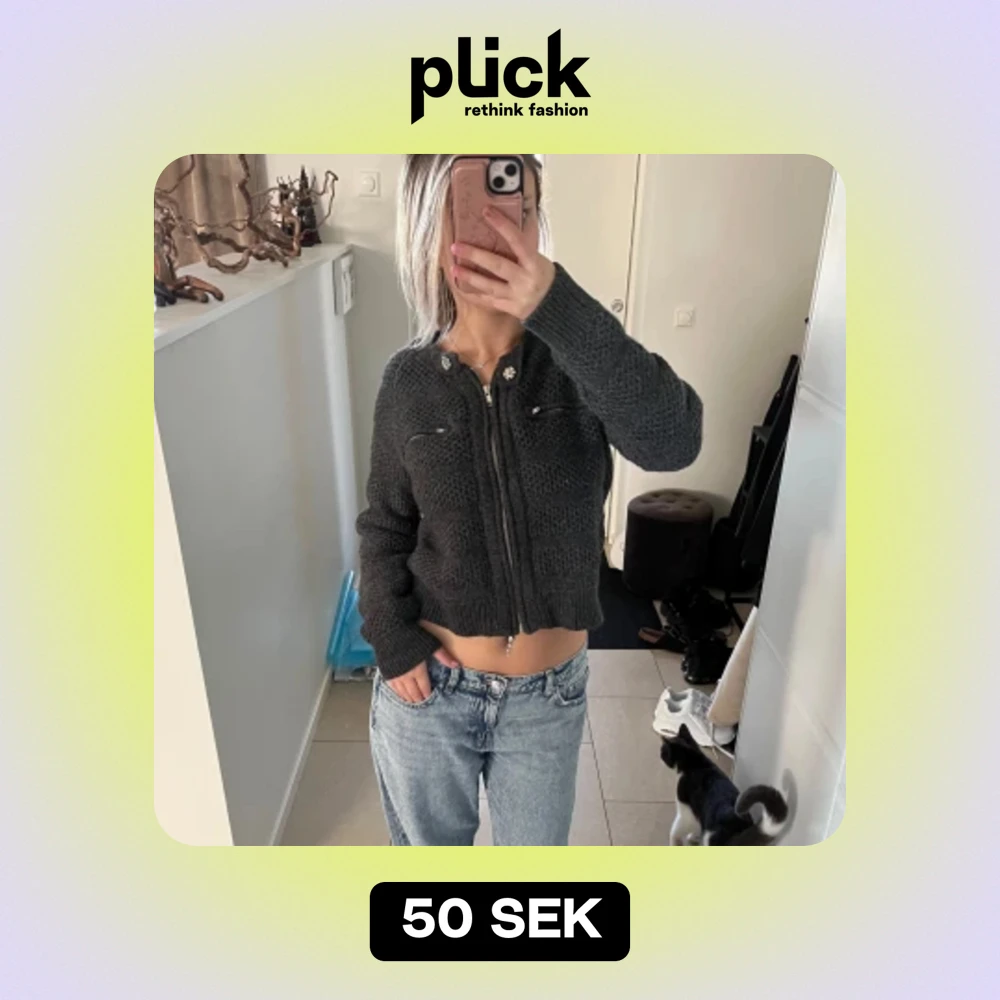 Säljer en superfin mörkgrå stickad kofta från H&M. Den har en dragkedja framtill och två små fejk fickor med dragkedja . Perfekt för höst och vinter, och den är både mysig och stilren. Koftan är i storlek M och passar perfekt till jeans eller kjol. 🖤
