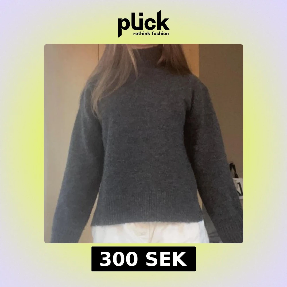 Mysig mörkgrå stickad polotröja med hög hals och långa ärmar från monki .💞
