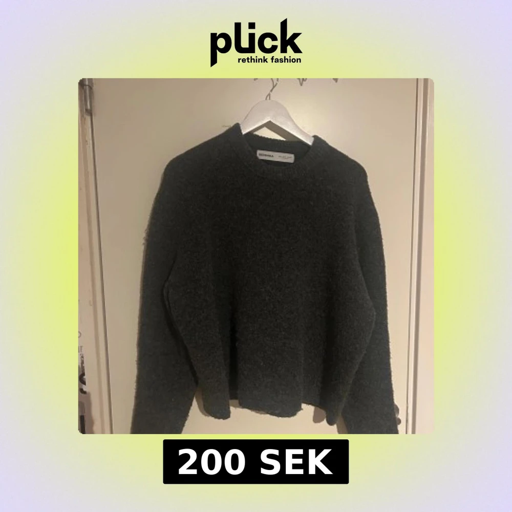 Mysig mörkgrå stickad tröja från Bershka med rund halsringning och lång ärm. Perfekt för lager-på-lager och chill höst- eller vinterstil. Enkel och stilren design som funkar till allt. Säljes i storlek S.