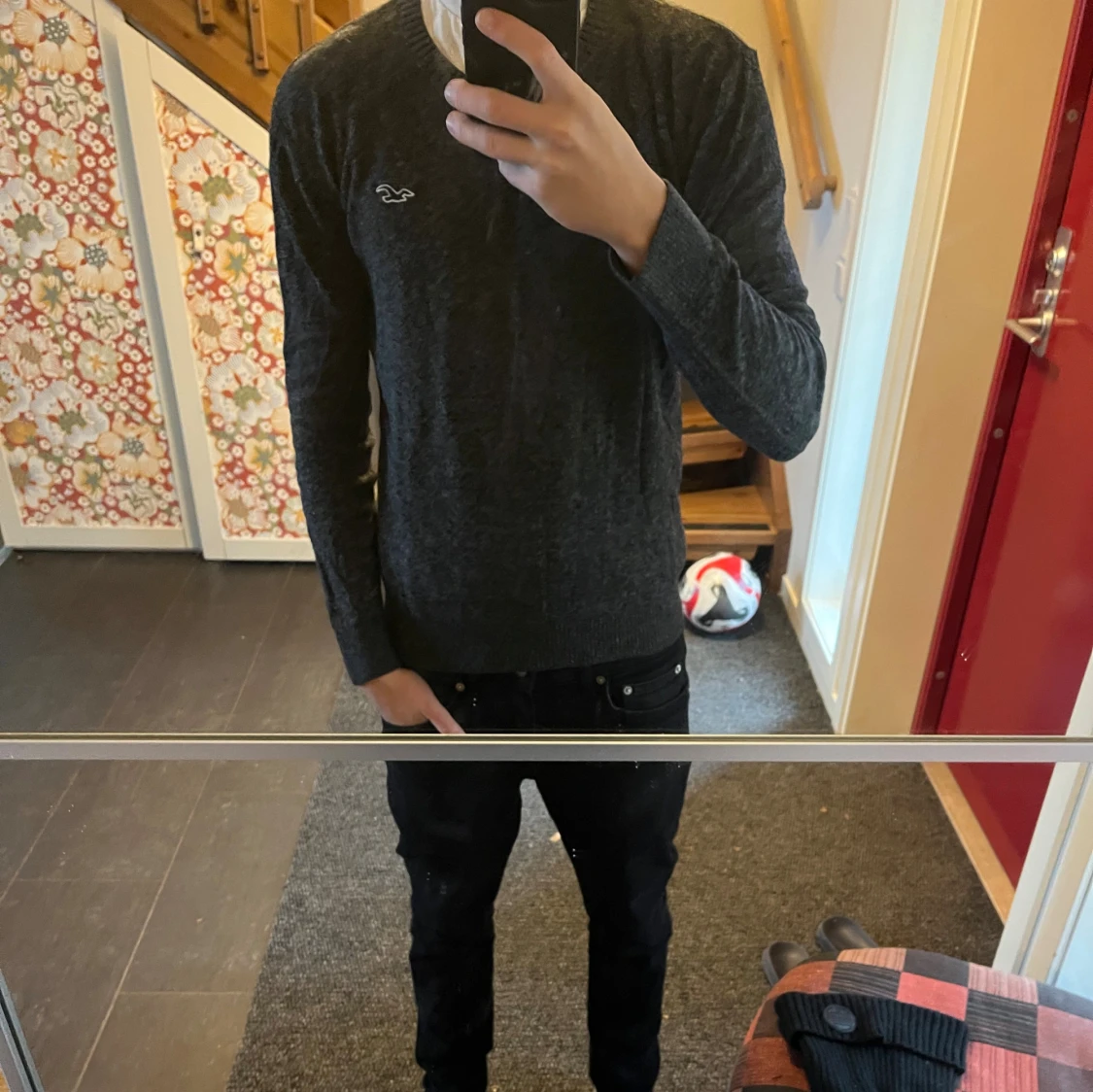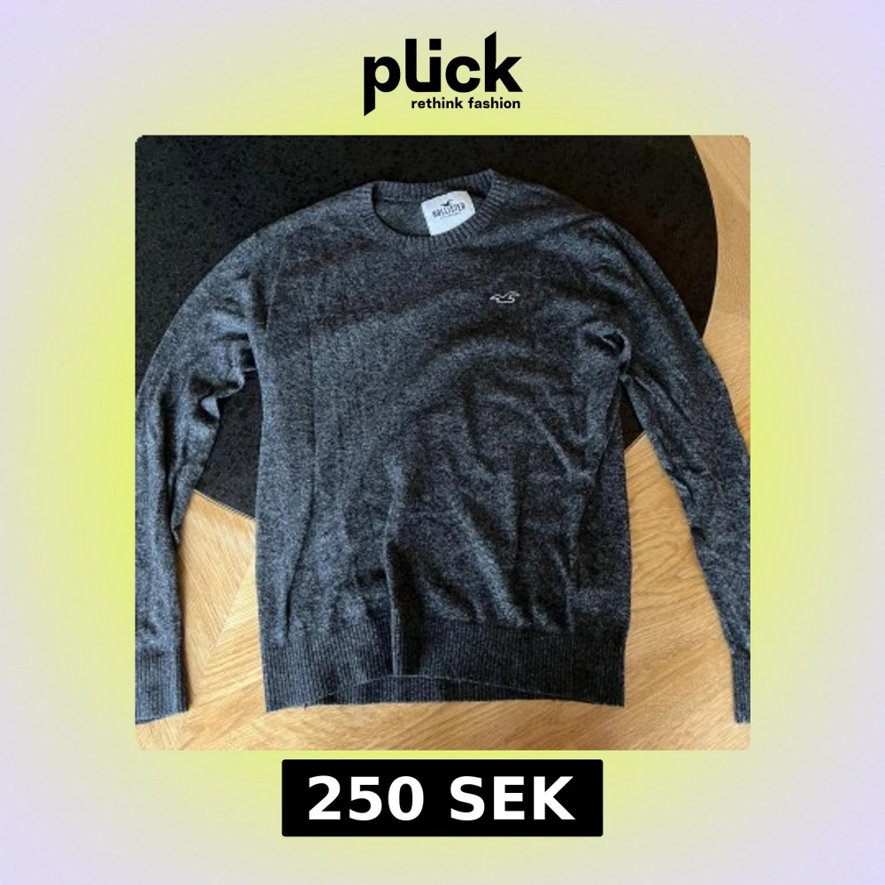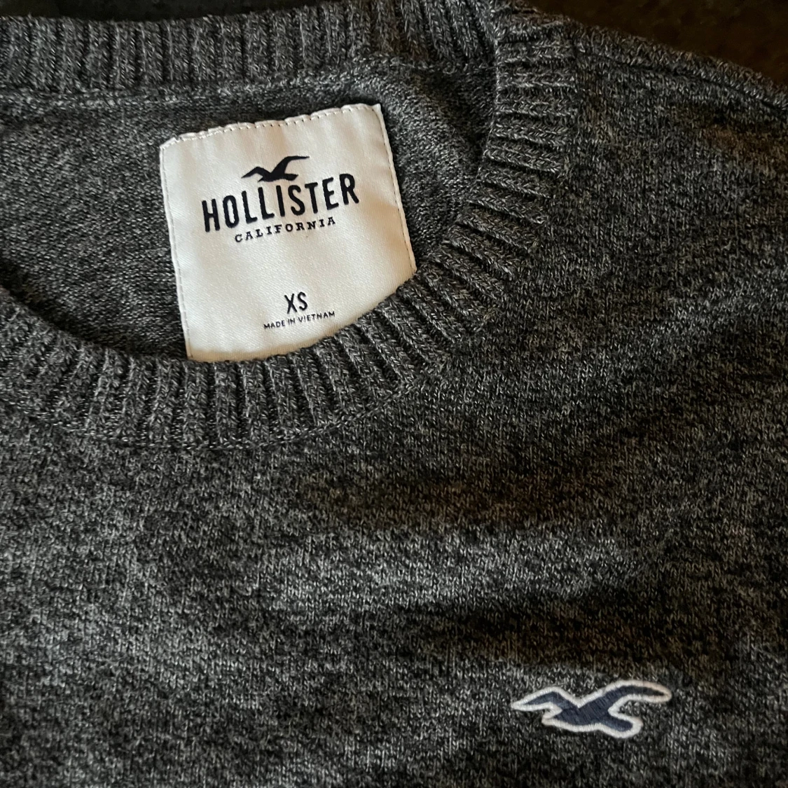 Snygg mörkgrå stickad tröja från Hollister med diskret logga på bröstet. Tröjan har rund hals, ribbade muddar och lång ärm. Perfekt för dig som gillar enkel och stilren look. Passar dig som vill ha en normal passform och mjukt material.